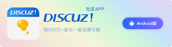 Discuz!? 討論區(qū)SaaS 時(shí)代的全新 Discuz! 版本,兩分鐘搭建一個(gè)社區(qū)的時(shí)代來了。官網(wǎng)地址:w.discuz.vip |